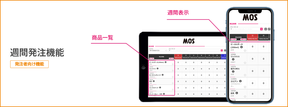 MOSで解決:定期発注・週間発注機能により、変更がある場合のみ修正するだけでOK!