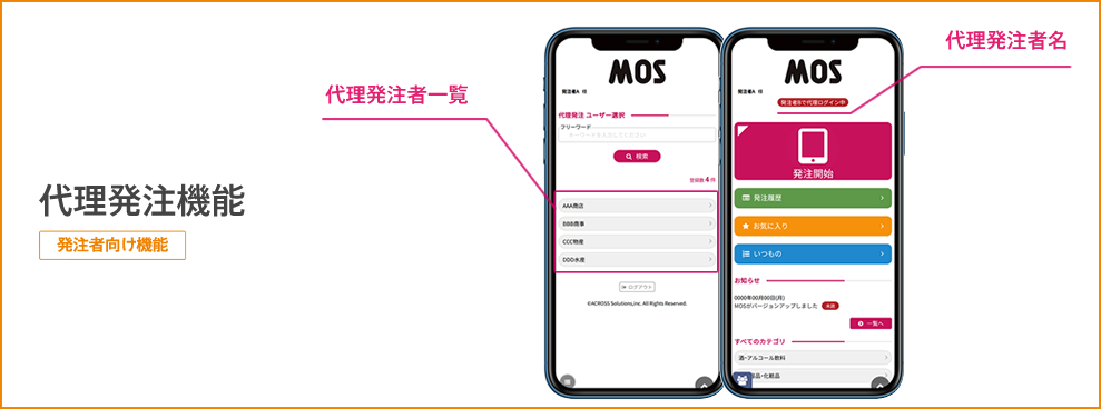 MOSで解決:代理発注機能で、現場からそのまま発注可能。データは基幹システムに自動連携!