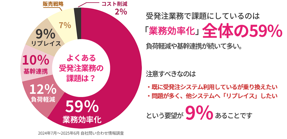 お客様から寄せられる受発注業務の課題は、大きく以下の6つのカテゴリに分類できます。
