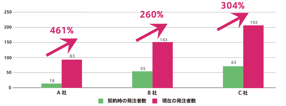 受発注システム導入に失敗する最大の理由は、「取引先が使ってくれなかった」 ことです。MOS導入企業の実データでは、導入後3ヶ月以内に発注者数が 260〜460%増加 しています。