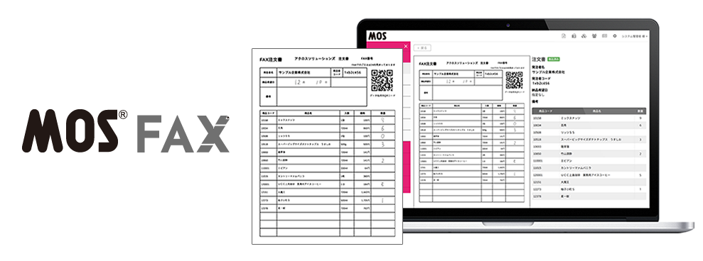 受発注システム「MOS」に受発注業務の従来の発注方法であるFAX発注をそのままに活かしながら、FAX注文書を「MOS」へデータとして取り込むことができる機能、それが「MOS FAX」です。アナログとデジタル、どちらの発注も受け付けることができるようになり、御社の受発注業務効率化を加速します。