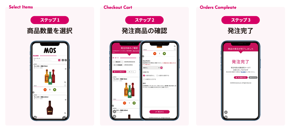 MOSでは、過去の発注履歴から「よく使う商品」や「定番の組み合わせ」を自動で提案。発注者は、数タップで“いつもの発注”が完了するため、手間がかからず、使い続けたくなる仕組みです。