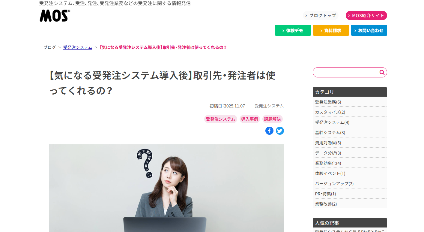 受発注コラム「【気になる受発注システム導入後】取引先・発注者は使ってくれるの?」を掲載いたしました